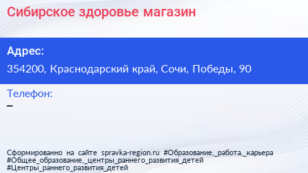 Сибирское здоровье, магазин по адресу 354200, Краснодарский край, Сочи, Победы, 90 в дальнейшем Организация, размещена в следующих категориях: