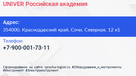 UNIVER, Российская академия по адресу 354000, Краснодарский край, Сочи, Северная, 12 к1 в дальнейшем Организация, размещена в следующих категориях: