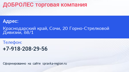 ДОБРОЛЕС, торговая компания по адресу Краснодарский край, Сочи, 20 Горно-Стрелковой Дивизии, 68/1 в дальнейшем Организация, размещена в следующих категориях: