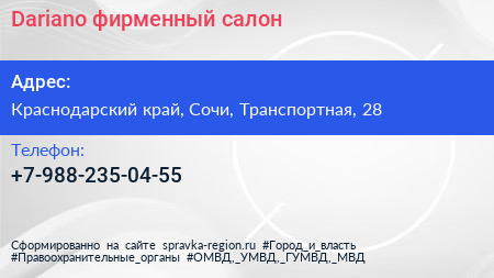 Dariano, фирменный салон по адресу Краснодарский край, Сочи, Транспортная, 28 в дальнейшем Организация, размещена в следующих категориях: