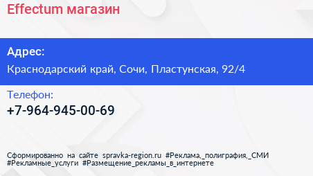 Effectum, магазин по адресу Краснодарский край, Сочи, Пластунская, 92/4 в дальнейшем Организация, размещена в следующих категориях: