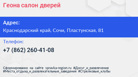 Геона, салон дверей по адресу Краснодарский край, Сочи, Пластунская, 81 в дальнейшем Организация, размещена в следующих категориях: