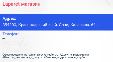Laparet, магазин по адресу 354200, Краснодарский край, Сочи, Калараша, 64в в дальнейшем Организация, размещена в следующих категориях: