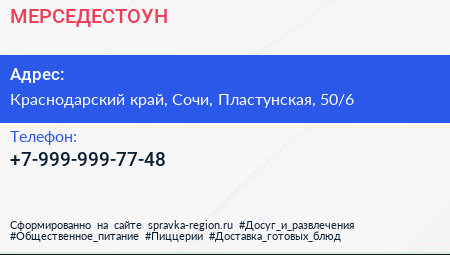 МЕРСЕДЕСТОУН по адресу Краснодарский край, Сочи, Пластунская, 50/6 в дальнейшем Организация, размещена в следующих категориях: