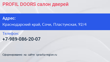 PROFIL DOORS, салон дверей по адресу Краснодарский край, Сочи, Пластунская, 92/4 в дальнейшем Организация, размещена в следующих категориях: