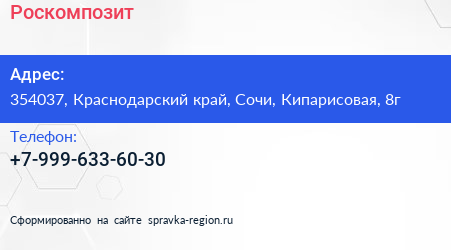 Роскомпозит по адресу 354037, Краснодарский край, Сочи, Кипарисовая, 8г в дальнейшем Организация, размещена в следующих категориях: