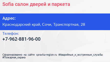 Sofia, салон дверей и паркета по адресу Краснодарский край, Сочи, Транспортная, 28 в дальнейшем Организация, размещена в следующих категориях: