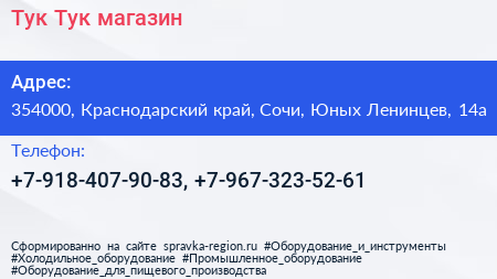 Тук-Тук, магазин по адресу 354000, Краснодарский край, Сочи, Юных Ленинцев, 14а в дальнейшем Организация, размещена в следующих категориях:
