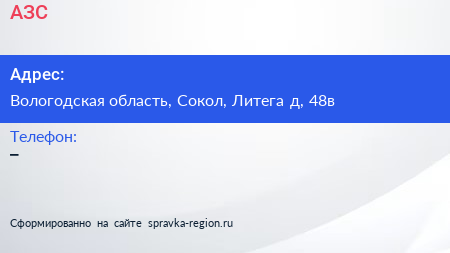 АЗС по адресу Вологодская область, Сокол, Литега д, 48в в дальнейшем Организация, размещена в следующих категориях: