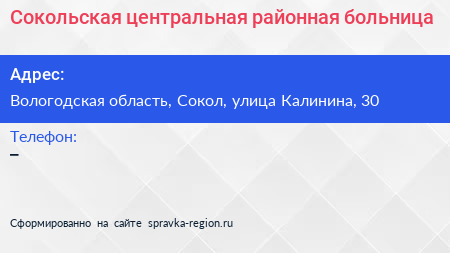 Сокольская центральная районная больница по адресу Вологодская область, Сокол, улица Калинина, 30 в дальнейшем Организация, размещена в следующих категориях: