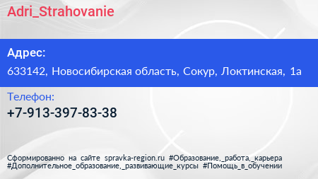 Adri_Strahovanie по адресу 633142, Новосибирская область, Сокур, Локтинская, 1а в дальнейшем Организация, размещена в следующих категориях: