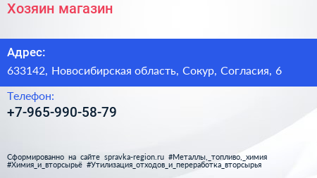 Хозяин, магазин по адресу 633142, Новосибирская область, Сокур, Согласия, 6 в дальнейшем Организация, размещена в следующих категориях: