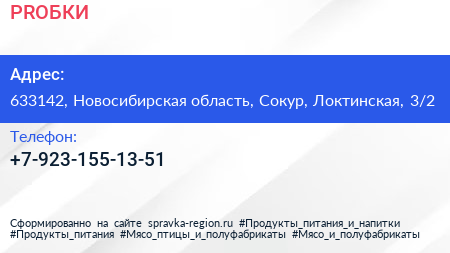 PROБКИ по адресу 633142, Новосибирская область, Сокур, Локтинская, 3/2 в дальнейшем Организация, размещена в следующих категориях: