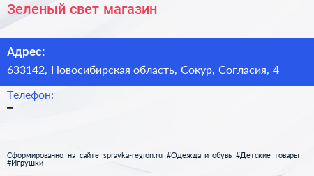Зеленый свет, магазин по адресу 633142, Новосибирская область, Сокур, Согласия, 4 в дальнейшем Организация, размещена в следующих категориях: