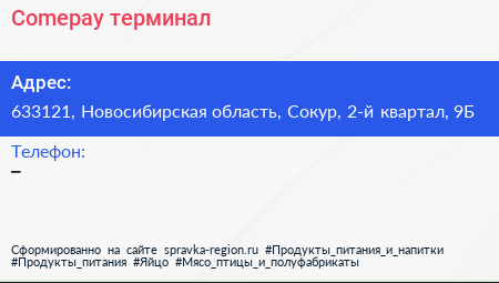 Comepay, терминал по адресу 633121, Новосибирская область, Сокур, 2-й квартал, 9Б в дальнейшем Организация, размещена в следующих категориях: