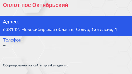 Оплот, пос. Октябрьский по адресу 633142, Новосибирская область, Сокур, Согласия, 1 в дальнейшем Организация, размещена в следующих категориях: