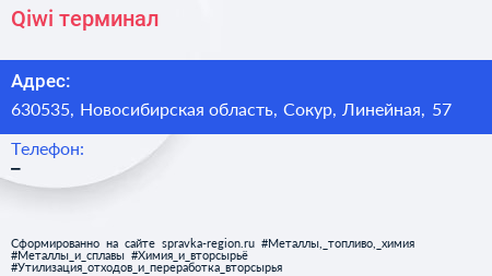 Qiwi, терминал по адресу 630535, Новосибирская область, Сокур, Линейная, 57 в дальнейшем Организация, размещена в следующих категориях: