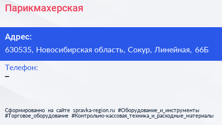 Парикмахерская по адресу 630535, Новосибирская область, Сокур, Линейная, 66Б в дальнейшем Организация, размещена в следующих категориях: