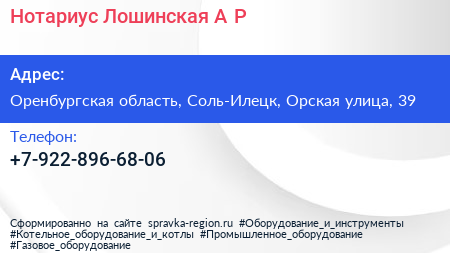 Нотариус Лошинская А.Р. по адресу Оренбургская область, Соль-Илецк, Орская улица, 39 в дальнейшем Организация, размещена в следующих категориях: