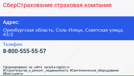 СберСтрахование, страховая компания по адресу Оренбургская область, Соль-Илецк, Советская улица, 43/2 в дальнейшем Организация, размещена в следующих категориях: