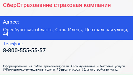 СберСтрахование, страховая компания по адресу Оренбургская область, Соль-Илецк, Центральная улица, 44 в дальнейшем Организация, размещена в следующих категориях: