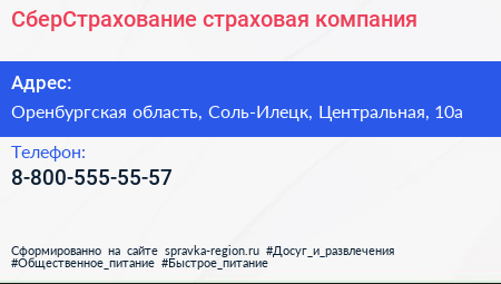 СберСтрахование, страховая компания по адресу Оренбургская область, Соль-Илецк, Центральная, 10а в дальнейшем Организация, размещена в следующих категориях: