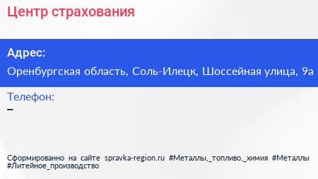 Центр страхования по адресу Оренбургская область, Соль-Илецк, Шоссейная улица, 9а в дальнейшем Организация, размещена в следующих категориях: