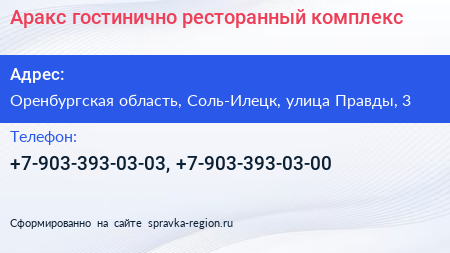Аракс, гостинично-ресторанный комплекс по адресу Оренбургская область, Соль-Илецк, улица Правды, 3 в дальнейшем Организация, размещена в следующих категориях: