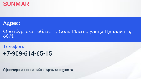 SUNMAR по адресу Оренбургская область, Соль-Илецк, улица Цвиллинга, 68/1 в дальнейшем Организация, размещена в следующих категориях: