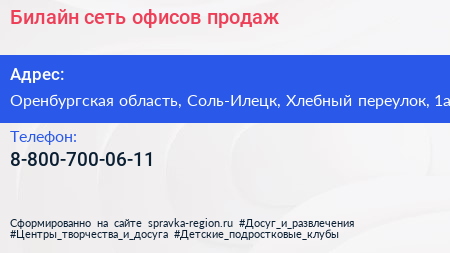 Билайн, сеть офисов продаж по адресу Оренбургская область, Соль-Илецк, Хлебный переулок, 1а в дальнейшем Организация, размещена в следующих категориях:
