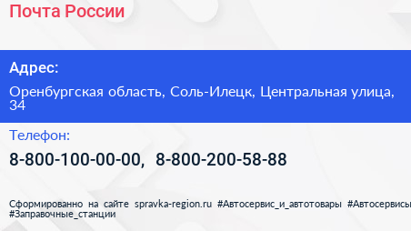 Почта России по адресу Оренбургская область, Соль-Илецк, Центральная улица, 34 в дальнейшем Организация, размещена в следующих категориях: