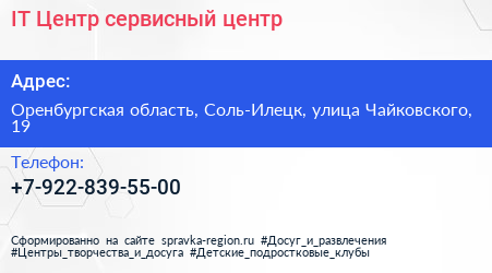IT Центр, сервисный центр по адресу Оренбургская область, Соль-Илецк, улица Чайковского, 19 в дальнейшем Организация, размещена в следующих категориях: