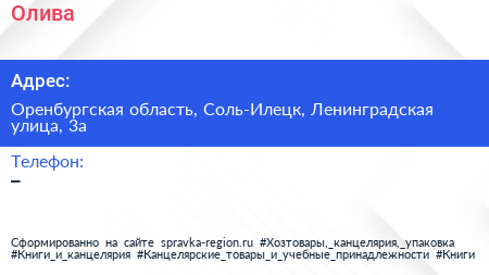 Олива по адресу Оренбургская область, Соль-Илецк, Ленинградская улица, 3а в дальнейшем Организация, размещена в следующих категориях:
