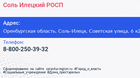 Соль-Илецкий РОСП по адресу Оренбургская область, Соль-Илецк, Советская улица, 6 к2 в дальнейшем Организация, размещена в следующих категориях: