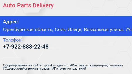 Auto Parts Delivery по адресу Оренбургская область, Соль-Илецк, Вокзальная улица, 79а в дальнейшем Организация, размещена в следующих категориях: