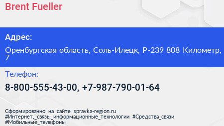 Brent Fueller по адресу Оренбургская область, Соль-Илецк, Р-239 808 Километр, 7 в дальнейшем Организация, размещена в следующих категориях: