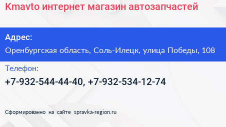 Kmavto, интернет-магазин автозапчастей по адресу Оренбургская область, Соль-Илецк, улица Победы, 108 в дальнейшем Организация, размещена в следующих категориях: