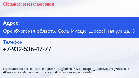 Осмос, автомойка по адресу Оренбургская область, Соль-Илецк, Шоссейная улица, 3 в дальнейшем Организация, размещена в следующих категориях: