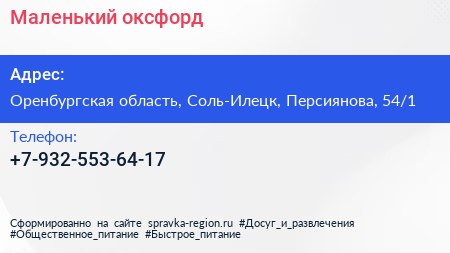 Маленький оксфорд по адресу Оренбургская область, Соль-Илецк, Персиянова, 54/1 в дальнейшем Организация, размещена в следующих категориях: