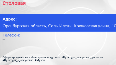 Столовая по адресу Оренбургская область, Соль-Илецк, Крюковская улица, 10 в дальнейшем Организация, размещена в следующих категориях: