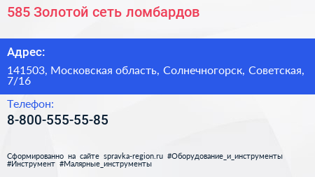585*Золотой, сеть ломбардов по адресу 141503, Московская область, Солнечногорск, Советская, 7/16 в дальнейшем Организация, размещена в следующих категориях: