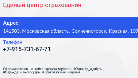 Единый центр страхования по адресу 141503, Московская область, Солнечногорск, Красная, 109 в дальнейшем Организация, размещена в следующих категориях: