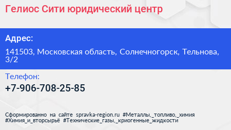 Гелиос Сити, юридический центр по адресу 141503, Московская область, Солнечногорск, Тельнова, 3/2 в дальнейшем Организация, размещена в следующих категориях: