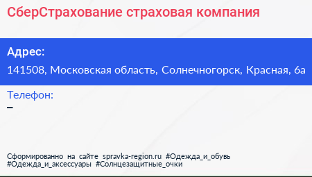 СберСтрахование, страховая компания по адресу 141508, Московская область, Солнечногорск, Красная, 6а в дальнейшем Организация, размещена в следующих категориях: