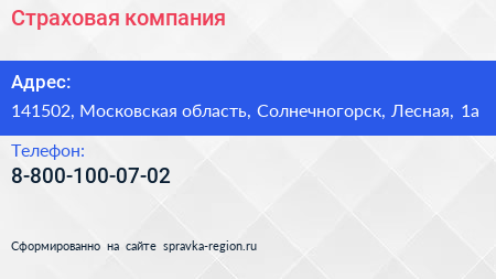Страховая компания по адресу 141502, Московская область, Солнечногорск, Лесная, 1а в дальнейшем Организация, размещена в следующих категориях: