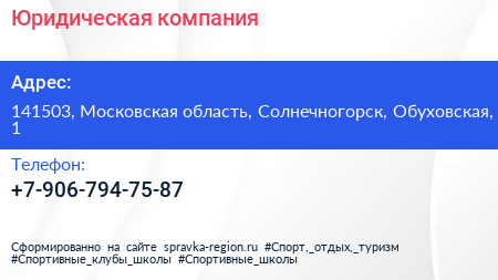 Юридическая компания по адресу 141503, Московская область, Солнечногорск, Обуховская, 1 в дальнейшем Организация, размещена в следующих категориях: