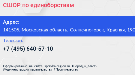 СШОР по единоборствам по адресу 141505, Московская область, Солнечногорск, Красная, 190 в дальнейшем Организация, размещена в следующих категориях: