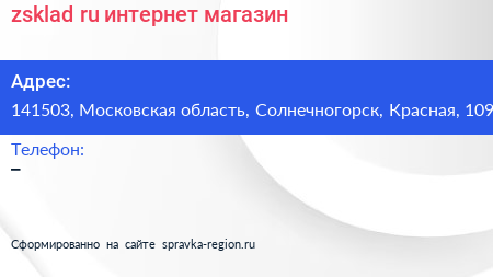 zsklad.ru, интернет-магазин по адресу 141503, Московская область, Солнечногорск, Красная, 109 в дальнейшем Организация, размещена в следующих категориях: