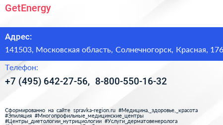 GetEnergy по адресу 141503, Московская область, Солнечногорск, Красная, 176 в дальнейшем Организация, размещена в следующих категориях:
