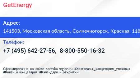 GetEnergy по адресу 141503, Московская область, Солнечногорск, Красная, 118 в дальнейшем Организация, размещена в следующих категориях:
